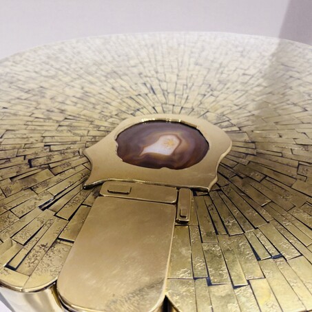 Jean Claude Dresse, Pair of side tables in Mosaic brass and agate, Belgium, 1970.