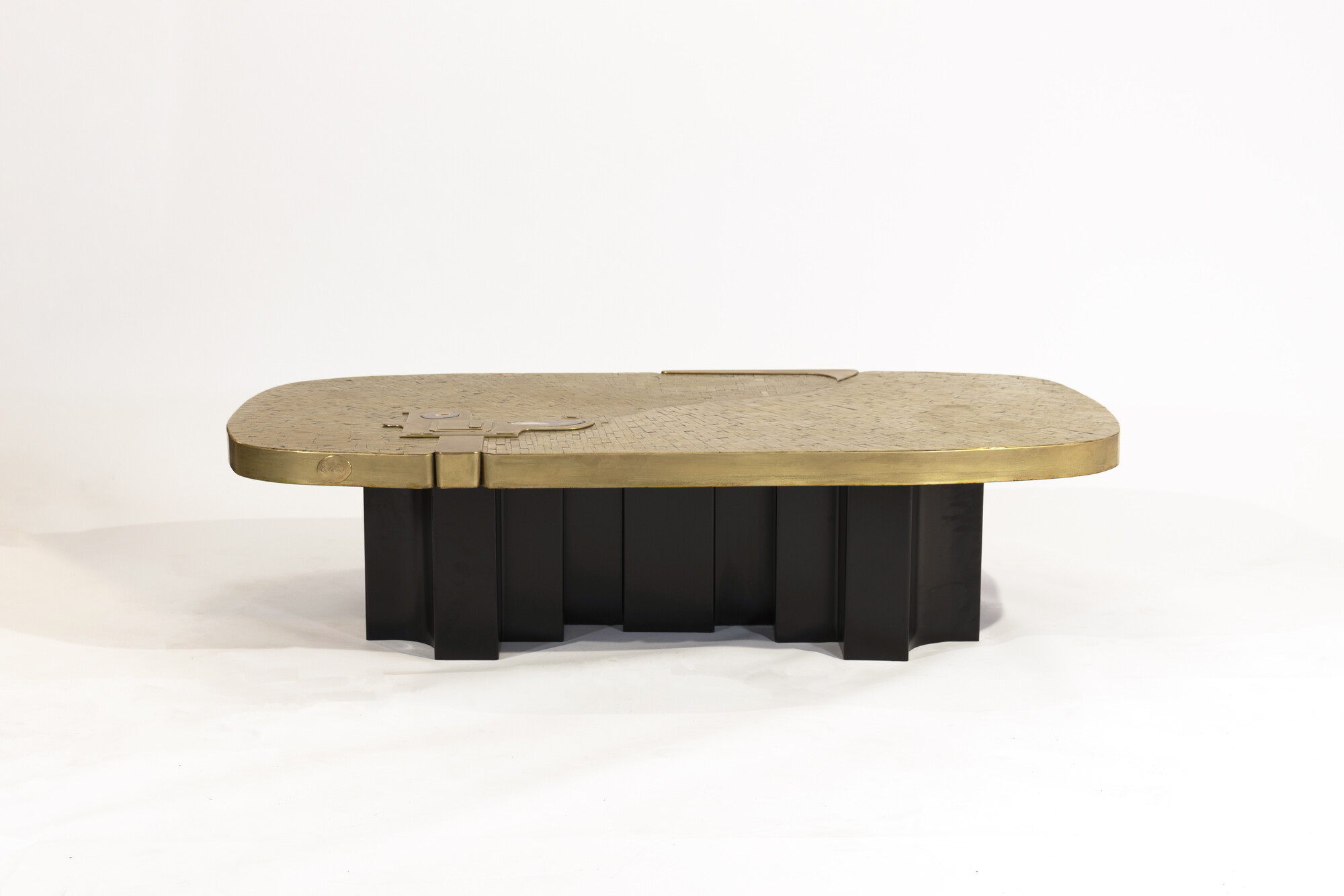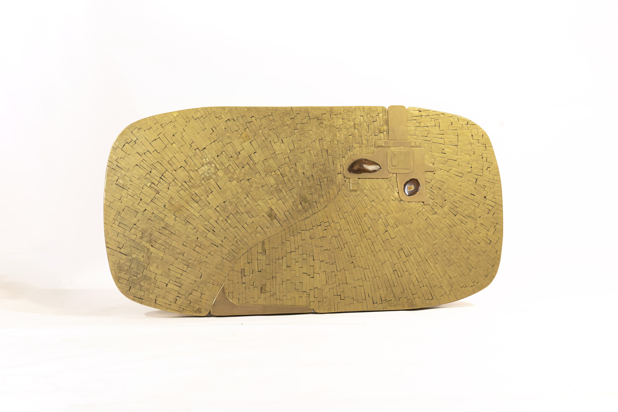 Jean Claude Dresse, coffee table, mosaic brass and agates, Belgium, 1970.