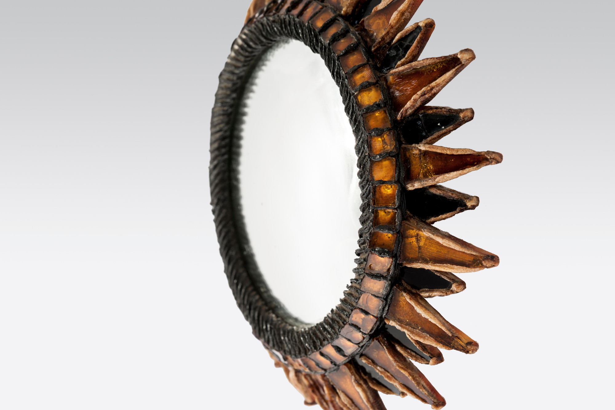 Structure made of beige and black talosel with amber and black mirrors inlays.