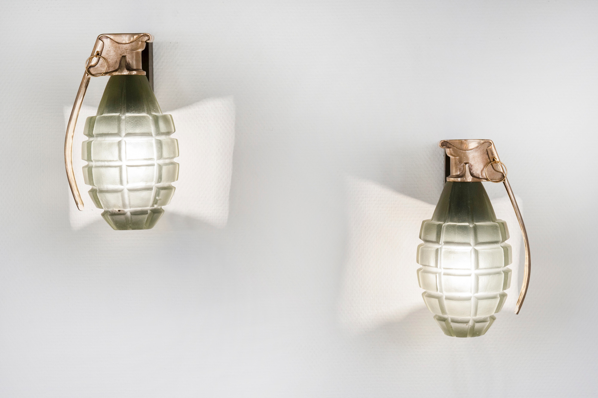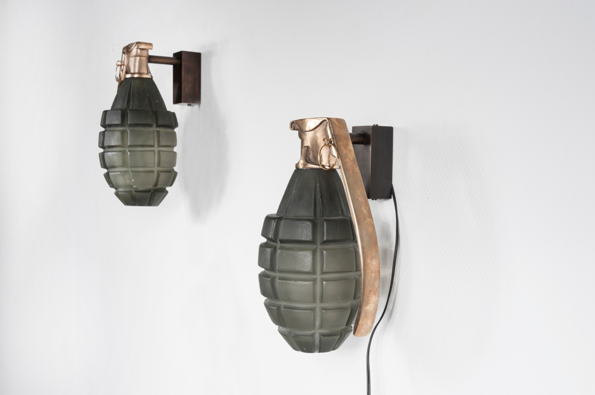 Created to measure by Stan Usel, this pair detail of green glass and bronze sconces.Left and right, Exceptional craftsmanship with the art of tailor made furniture. This original and unique pieces are signed by the artist and comes with the certificate of authenticity.All pieces can be custom-made to order. Proudly Belgian.