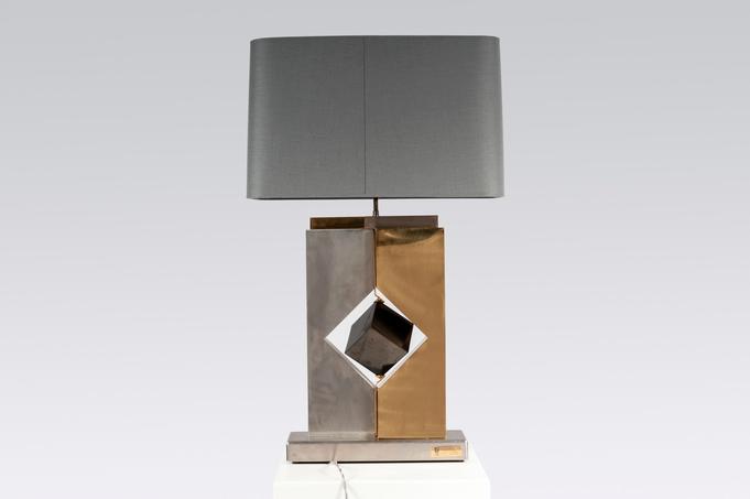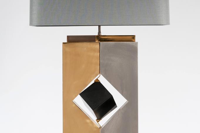 Created to measure by Stan Usel, this pair detail of Black marble cube,stainless steel and brass table lamps. Each piece is inlay with a unique stone and when put together aside gives a great sense of harmony. Exceptional craftsmanship with the art of tailor made furniture. This original and unique pieces are signed by the artist and comes with the certificate of authenticity.All pieces can be custom-made to order. Proudly Belgian.
