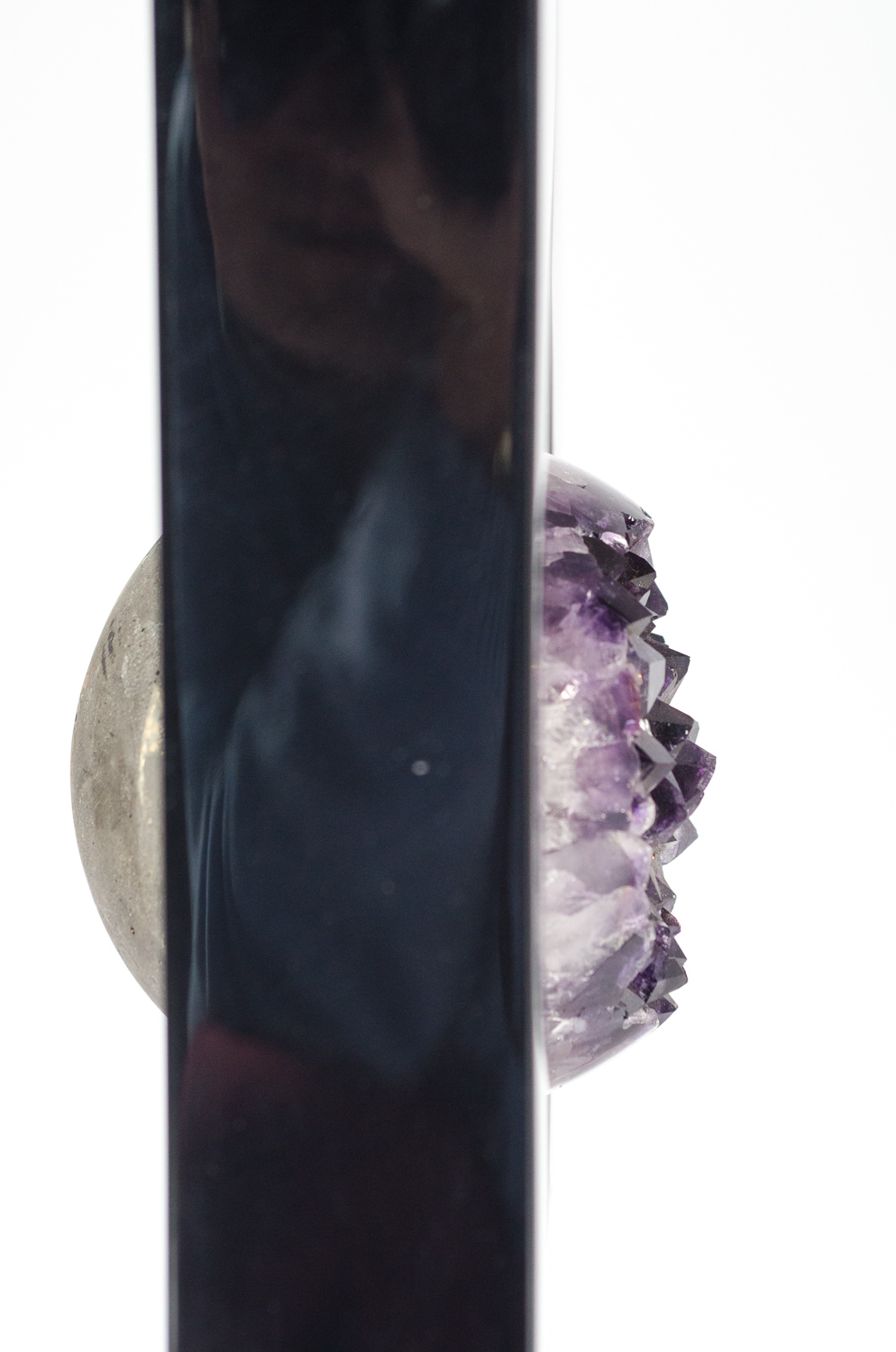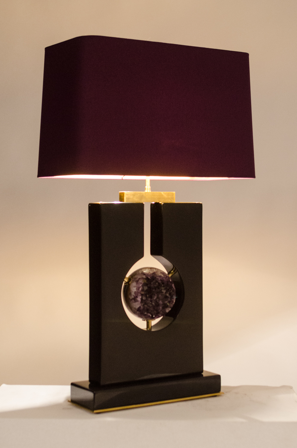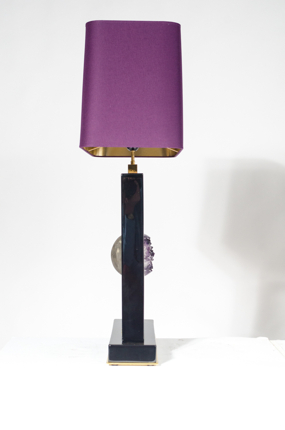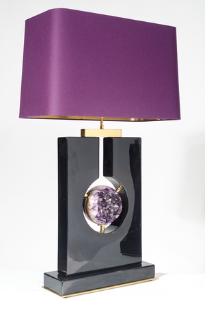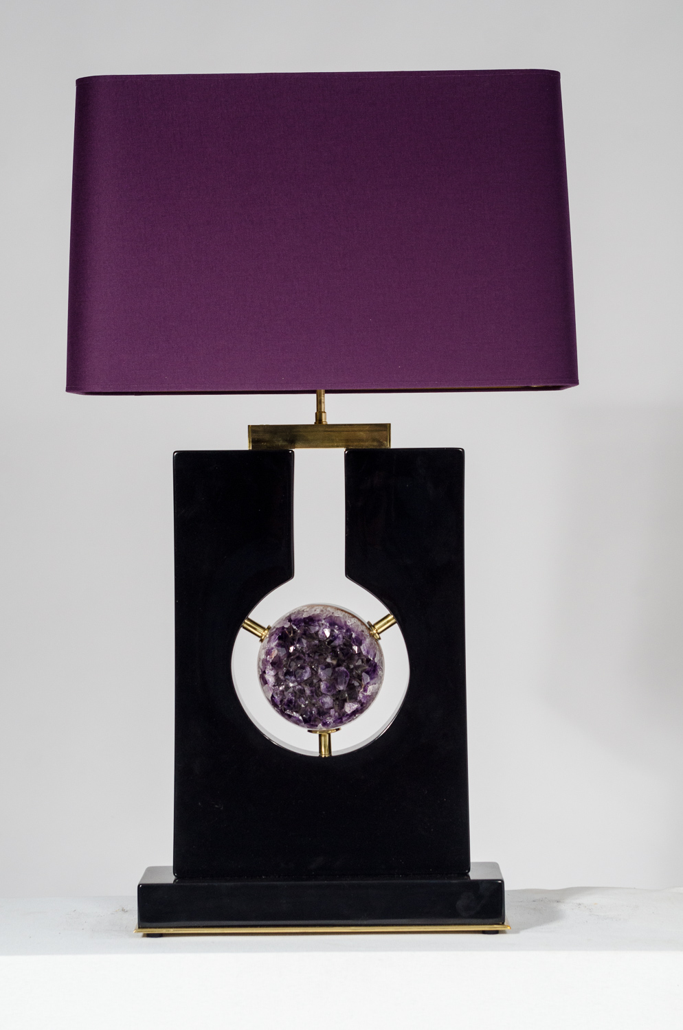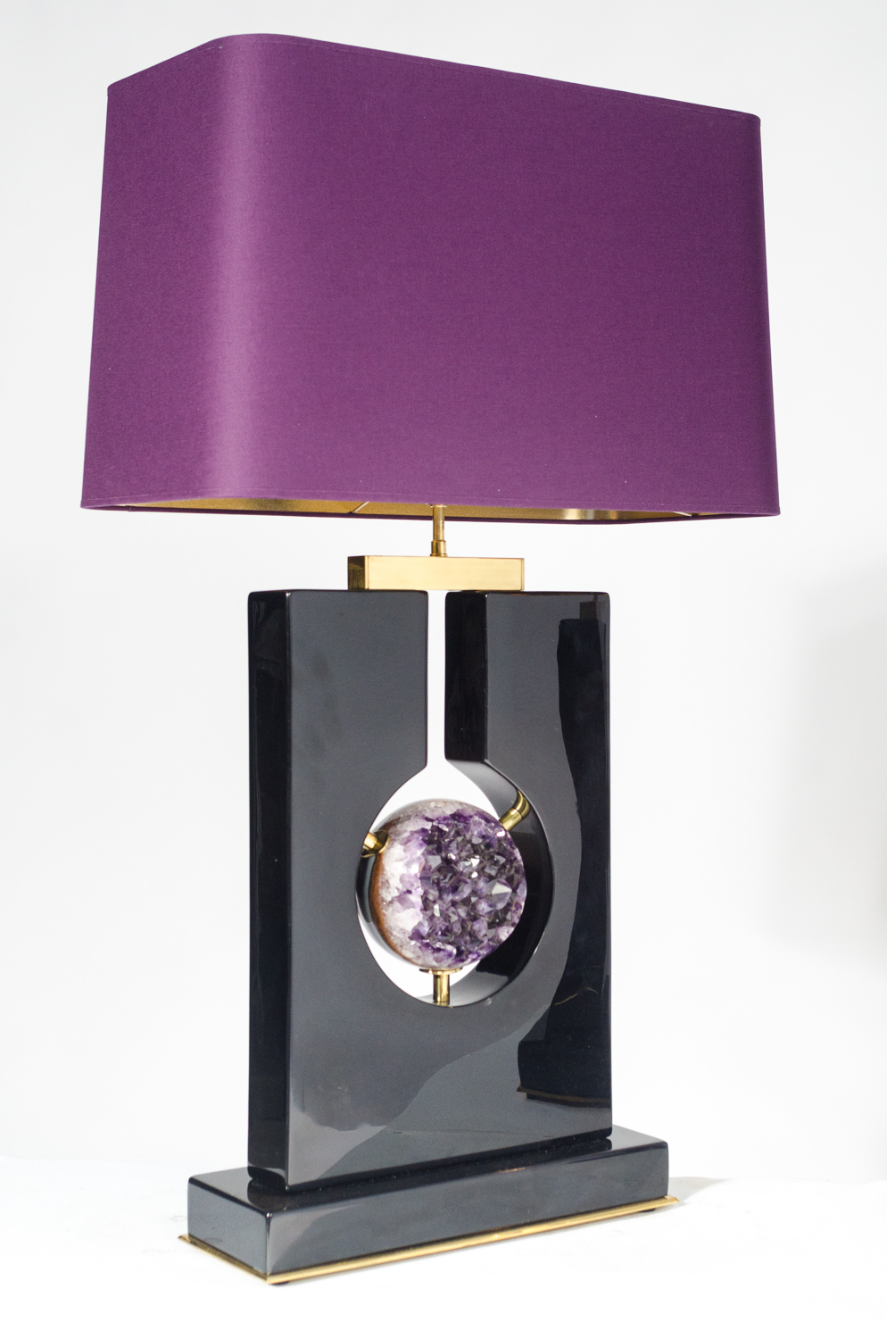 One of a kind Studio Built Pair of Table Lamps in Black resin Crimped Ametist sphere by Stan Usel.