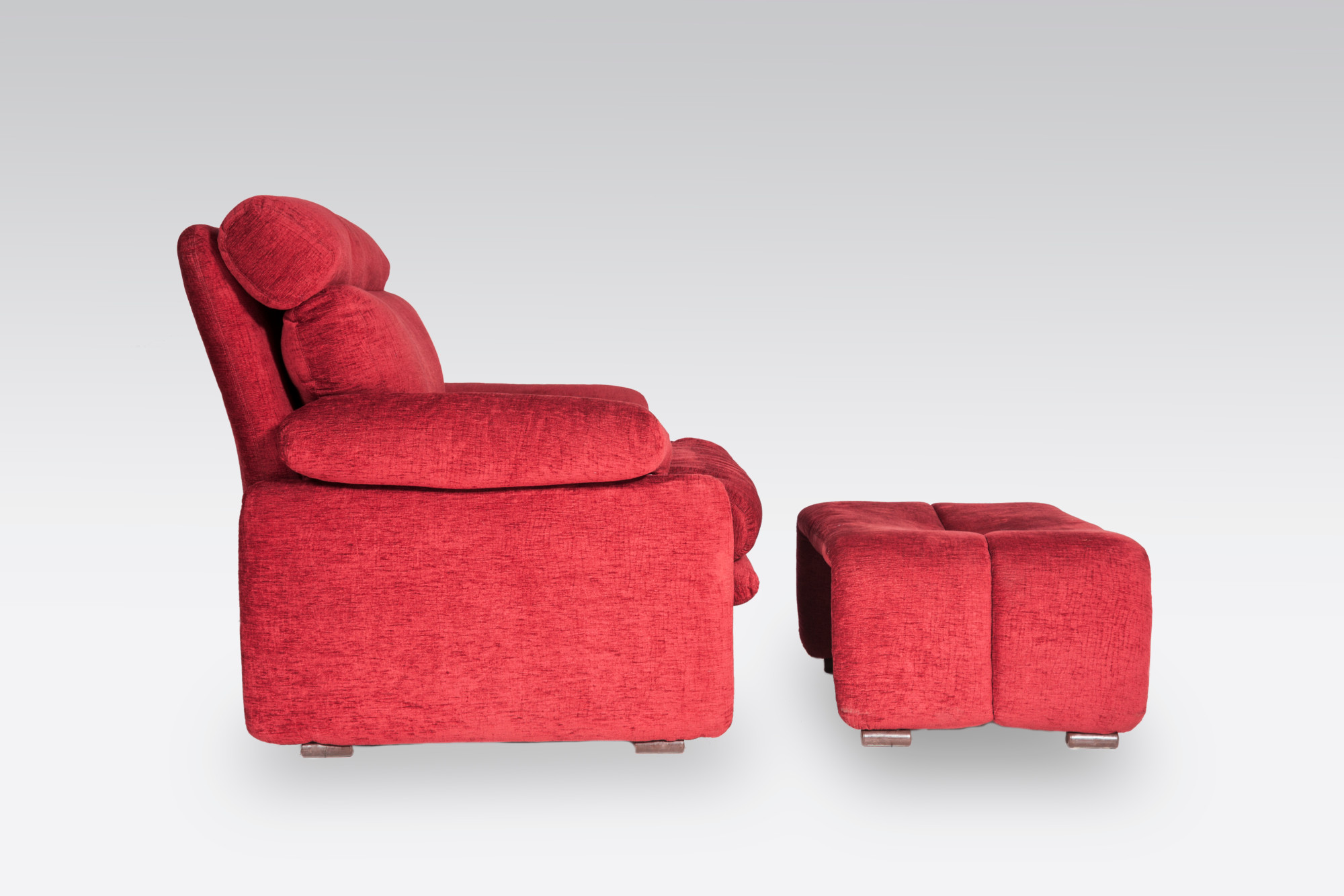 A Pair of Armchairs and gis ottoman model Coronado by Tobia Scarpa for B & B Italian, circa 1970s. Oxide red original velvet upholstery.